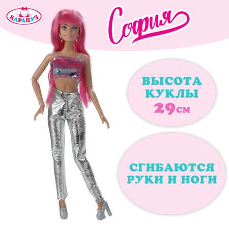 Очаровательная София одета в розовый топ и серебристые брюки, на ногах стильные туфли. Образ дополняют оригинальные серьги. Одежду и аксессуары легко снять и надеть. С такой модной куклой девочке будет интересно и весело играть: благодаря тому, что руки и ноги куклы подвижны, им можно придать любое положение. У Софии длинные красивые волосы, которые хозяйка куклы сможет заплетать в разные причёски. Детально проработанный дизайн игрушки вдохновит девочку на множество увлекательных игровых сюжетов.
