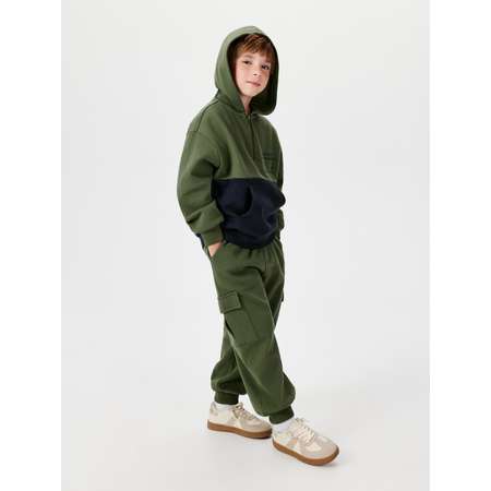 Детские утепленные брюки карго для мальчика изготовлены из хлопкового футера с мягким начесом на изнанке, который обеспечивает комфортное ношение в холодное время года. Пояс на резинке с дополнительной регулировкой шнурком обеспечивает удобную посадку на разные типы фигур. Модель COMFORT fit отличается белее объёмным кроем для комфортной посадки. Практичности добавляют карманы в боковых швах, а накладные карманы с клапанами на липучке и прорезной карман на спинке добавляют модели стильный акцент. Один из боковых накладных карманов украшен нашивкой с надписью "ENJOY THE JOURNEY" [англ. - "Наслаждайся путешествием"], которая мотивирует и заряжает позитивом. Низ брючин выполнен в виде эластичных манжет для лучшего прилегания к телу и сохранения тепла. Добавьте к брюкам комплектное худи (20130580019), чтобы собрать стильный теплый костюм для мальчика.