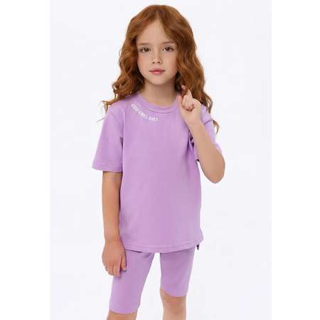 Комплект летний для девочки состоит из футболки и велосипедок. Пояс велосипедок на резинке.