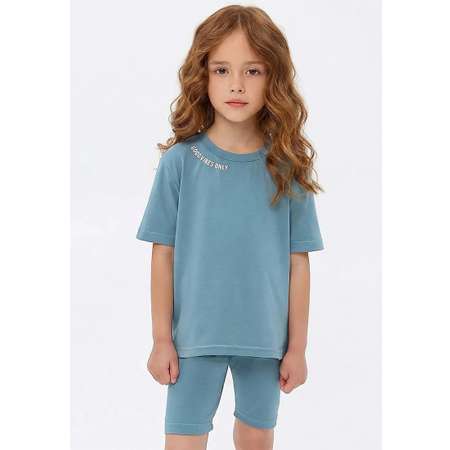 Комплект летний для девочки состоит из футболки и велосипедок. Пояс велосипедок на резинке.