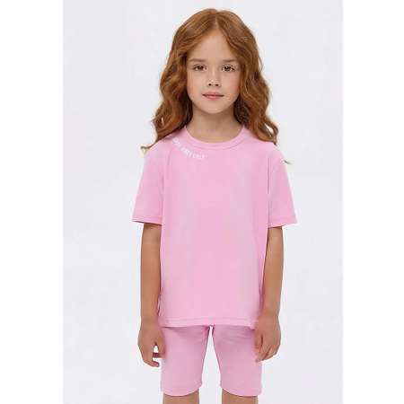 Комплект летний для девочки состоит из футболки и велосипедок. Пояс велосипедок на резинке.