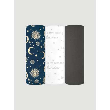 Пелёнка Mjolk Солнце-Луна/Grey/Hello Mommy трикотаж 80х80 см 3 шт.