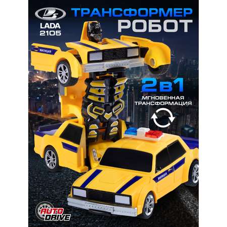 Машинка-трансформер LADA 2105 от торговой марки AUTODRIVE - это удивительный подарок для вашего ребенка. Она представляет собой качественный современный автомобиль, который может трансформироваться в робота с помощью нажатия кнопки на бампере.