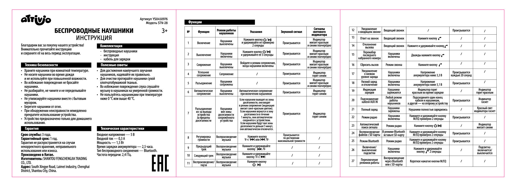 Цена на Наушники накладные Attivio Bluetooth - 1599 ₽.