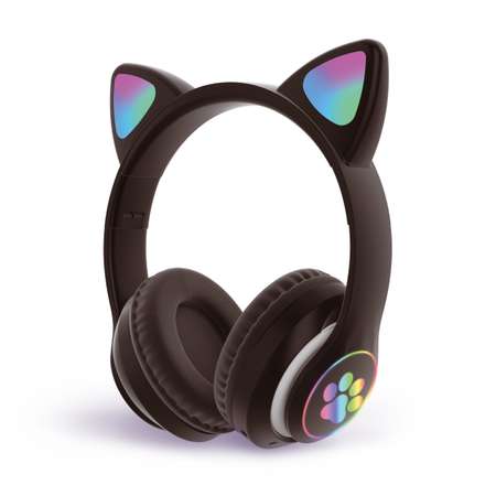 Чёрные беспроводные наушники Attivio с кошачьими ушками и LED -подсветкой — это стильный и классный подарок для ребёнка. Они не только порадуют отличным звуком, но и добавят яркий акцент в образ. Подключитесь к смартфону по Bluetooth, чтобы слушать музыку, смотреть видео или разговаривать по телефону. Или вставьте в наушники SD-карту и наслаждайтесь любимыми треками без смартфона или планшета. Наушники работают от встроенного аккумулятора (USB-кабель для зарядки в комплекте). LED -подсветку при желании можно отключить.