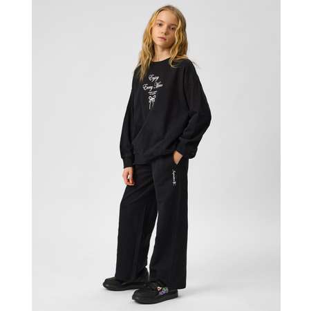 Широкие трикотажные брюки для девочки Futurino чёрного цвета.