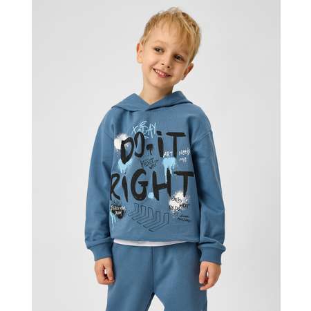 Синее худи для мальчика Futurino, декорированное принтом с надписями.