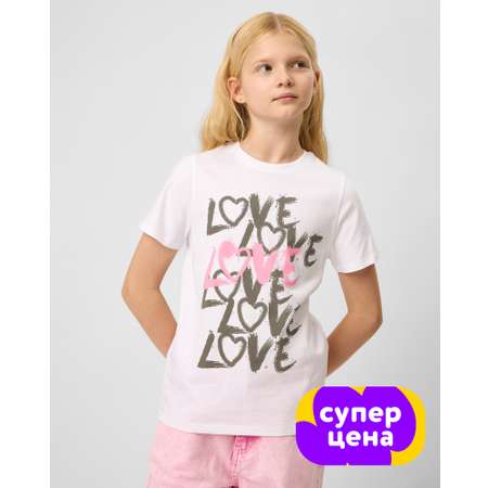 Белая футболка для девочки Futurino, декорированная принтом с надписью "Love".