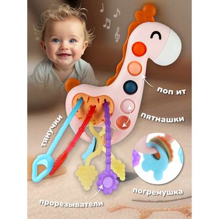 Игрушка 5 в 1, тянучка, поп ит, пятнашки, погремушка и прорезыватель. Монтессори для малышей имеет разные игровые площадки для развития важных навыков, ремешок в комплекте, можно повесить на коляску или кроватку. Развивающий игровой центр отличается компактными размерами, удобно взять с собой, изготовлен из долговечных материалов. Лошадка игрушечная в качественном исполнении и милом дизайне. Развивающий бизиборд с округлыми формами, безопасно для ребенка, комфортный размер для детских ручек. Детская игрушка станет замечательным подарком малышам на Новый год и День рождения.