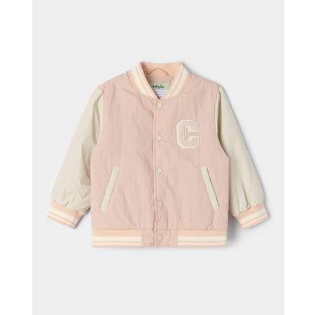 Куртка-бомбер для девочки BabyGo в розовом цвете, с объёмной нашивкой.