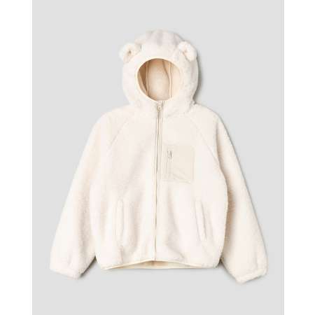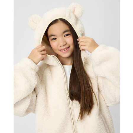 Меховая (плюшевая) куртка для девочки Futurino с ушками на капюшоне и дополнительным текстильным карманом.