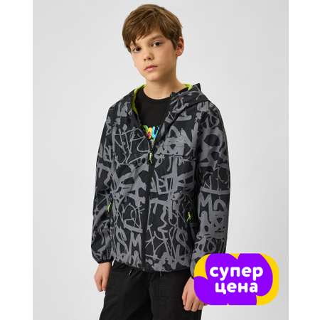 Чёрная ветровка для мальчика Futurino с контрастным принтом в стиле граффити.