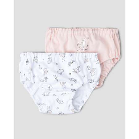 В комплекте BabyGo две модели трусов для девочки, декорированные принтом с зайчиками - белые и розовые.