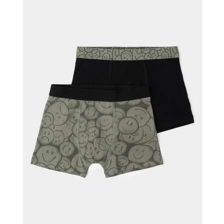 В комплекте Futurino две модели трусов-боксеров для мальчика - чёрные и в цвете хаки с принтом.