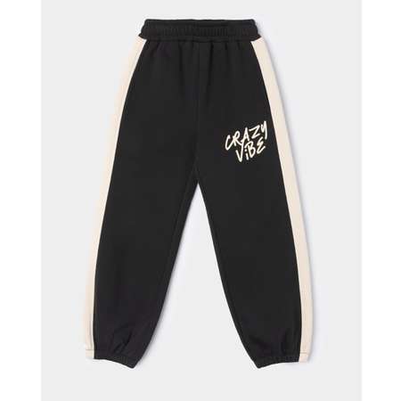 Брюки для мальчика Futurino Fashion чёрного цвета с лампасами и надписью "Crazy vibe".