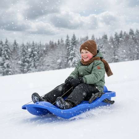 Яркие пластиковые санки в синем цвете станут любимым зимним развлечением для вашего малыша!