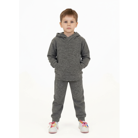 Костюм сшит в однотонном цвете с меланжевым эффектом.