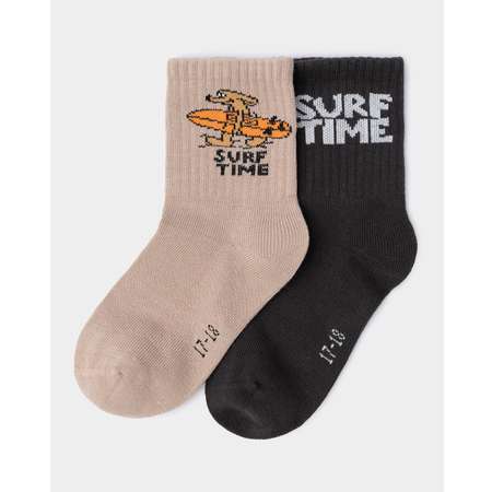 В комплекте Futurino две пары носков для мальчика - бежевые и тёмно-серые с принтом "Surf time".