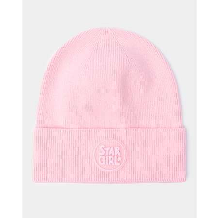 Шапка для девочки Futurino в розовом цвете, с нашивкой.
