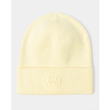 Шапка для девочки Futurino в жёлтом цвете, с нашивкой.