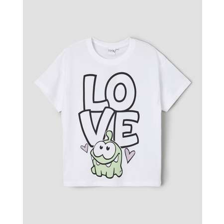 Белая футболка для девочки OM NOM с цветным принтом "Ам Ням Love".