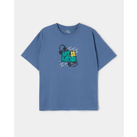 Синяя футболка для мальчика Futurino с двусторонним цветным принтом в стиле граффити.