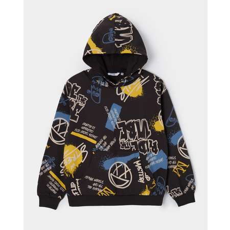Тёмно-серое худи для мальчика Futurino с цветным принтом в стиле граффити.