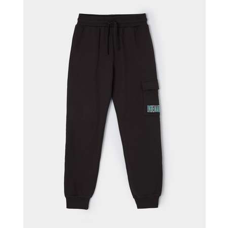 Тёмно-серые трикотажные брюки для мальчика Futurino с накладным карманом, декорированным нашивкой.