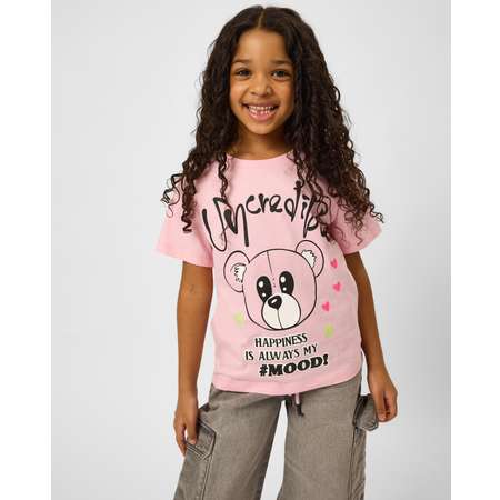 Светло-розовая футболка для девочки Futurino с двусторонним принтом.