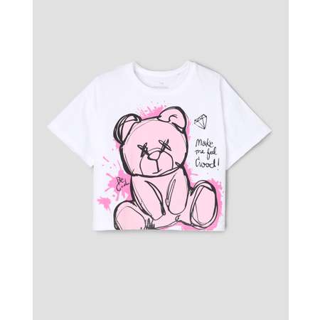 Белая футболка для девочки Futurino с двусторонним принтом в стиле граффити.