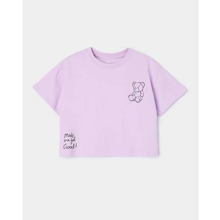 Сиреневая футболка для девочки Futurino с двусторонним принтом в стиле граффити.