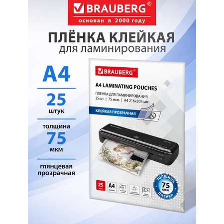 Пленка для ламинирования Brauberg А4 с клейкой стороной 25 штук 75 мкм