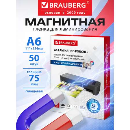 Пленка для ламинирования Brauberg А6 с магнитом для фото 50 штук 111x154 мм 75 мкм