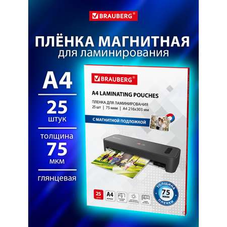 Цена на Пленка для ламинирования Brauberg А4 с магнитом для фото 25 штук 75 мкм - 1714 ₽.