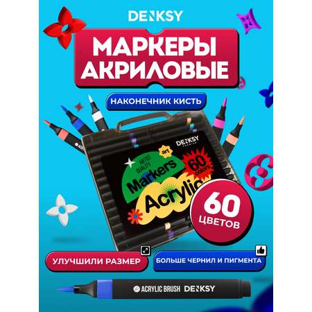 Акриловые маркеры DENKSY с наконечником кисть 60 цветов премиум качества.