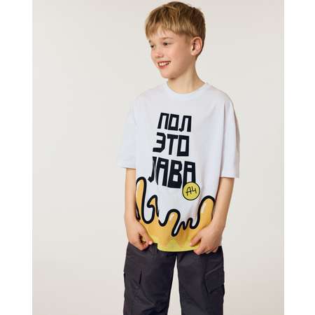 Белая футболка для мальчика А4 с контрастным принтом "Пол это лава".