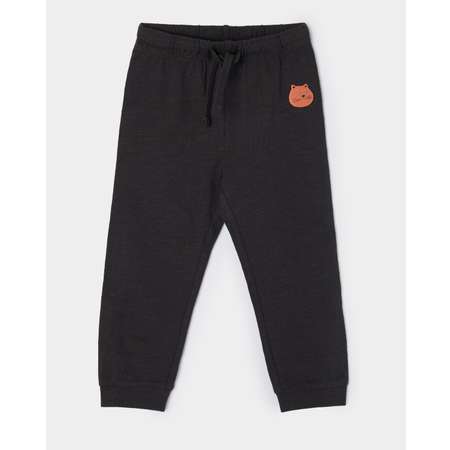Тёмно-серые брюки для мальчика BabyGо, декорированные нашивкой в виде котика.