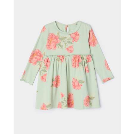 Зелёное платье для девочки BabyGо, декорированное цветочным принтом.