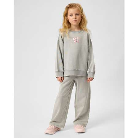 Однотонные широкие брюки для девочки Futurino серого цвета.