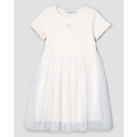 Белое платье для девочки Futurino с оборками на рукавах и пышной юбочкой, украшенной блёстками.