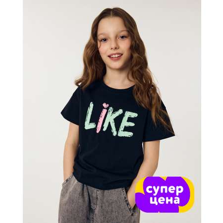 Чёрная футболка для девочки Futurino с надписью "Like".