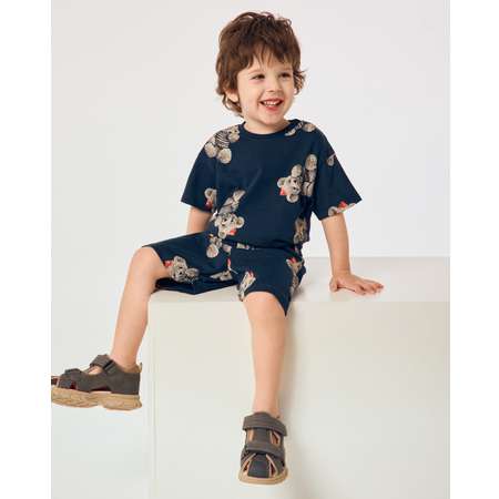 Синий комплект для мальчика BabyGо Trend из шорт и футболки, декорированных принтом с медвежатами.