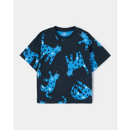Чёрная футболка для девочки Futurino Fashion, декорированная ярким принтом с гепардами.