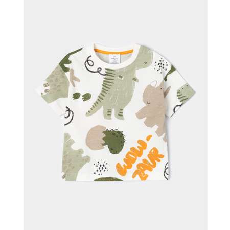 Футболка для мальчика BabyGo Trend, декорированная разноцветным принтом с забавными динозавриками.