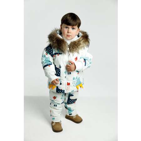 Лучший комплект этой зимы!Детский зимний комплект подходит и для девочки, и для мальчика — это идеальный выбор для прогулок в зимнее время года.Он не только обеспечивает надежную защиту от непогоды, но и гарантирует максимальное удобство и комфорт для вашего ребенка. Очень важно, что этот комплект наполнен гусиным пухом. 100% гусиный пух – большая редкость. Костюм очень легкий, что дает малышу возможность свободно двигаться. При этом, комплект прекрасно вам послужит даже в самую холодную погоду.В комплект входят куртка и полукомбинезон.Куртка создана для тех, кто ценит комфорт и тепло в холодные дни. Она наполнена 100% натуральным гусиным пухом, который обеспечивает отличную теплоизоляцию и легкость. Особенности:- Цельный капюшон: без застежек и пуговиц, что предотвращает попадание ветра и снега внутрь.- Отделка натуральным мехом: Капюшон отделан натуральным мехом, создавая эффект пушистого воротника и дополнительную защиту от непогоды.Полукомбинезон для активных малышей, которые не любят сидеть на месте. Они наполнены 100% натуральным гусиным пухом, что делает их легкими и невероятно теплыми.Особенности:- Регулируемые бретельки: позволяют легко подстроить размер под рост ребенка.- Удобная молния: расстёгивается глубоко между ног до самой спины, что упрощает процесс переодевания и смены подгузников.Ваш малыш не будет ни на кого похож! И точно будет в восторге от динозавров Идеальный выбор для активных малышей, которые любят исследовать мир даже в холодную погоду! Легкость и комфорт: благодаря натуральному пуху, куртка и штаны не сковывают движения и позволяют ребенку свободно бегать и прыгать.В таком костюме ваш ребенок будет чувствовать себя комфортно и уверенно как во время прогулок в детском саду, так и во время занятий на свежем воздухе. Комплект может быть прекрасным подарком. Размерный ряд соответствует росту ребенка – 90-100-110.