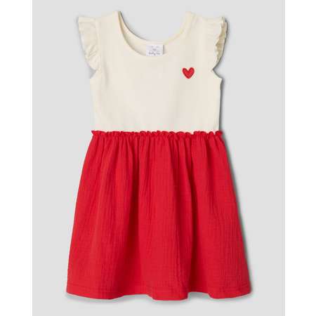 Платье для девочки BabyGo с контрастной красной юбочкой. Декорировано вышивкой-сердечком.