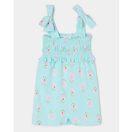 Мятный полукомбинезон-шорты для девочки BabyGo с цветочным принтом.