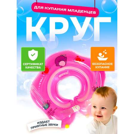 Круг для малышей до года с прозрачными ручками, специально разработан для грудничков до года и рассчитан на окружность шей до 29 см. C ним водные процедуры пройдут весело и просто. Мягкий внутренний шов не будет натирать чувствительную кожу на шее ребенка, обеспечивая комфортное и безопасное использование круга как в ванной, так и в бассейне. Анатомическая выемка для подбородка дарит дополнительное удобство и поддержку головы во время плавания. Ваш малыш будет свободно держаться на воде, шевелить ручками и ножками, при этом нос и рот будут защищены от попадания воды, а погремушки внутри круга позабавят малыша.