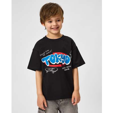 Чёрная футболка для мальчика Futurino с ярким цветным принтом.