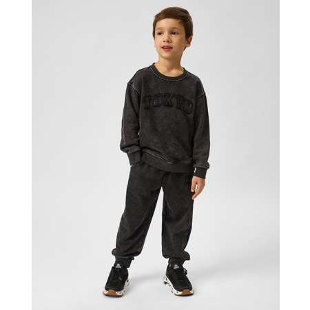 Брюки для мальчика Futurino чёрного цвета, декорированы нашивкой.